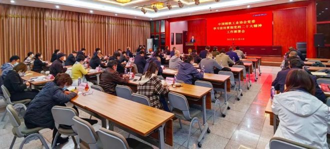 為全面貫徹落實黨的二十大精神,扎實、深入、高效推動鋼協系統學習宣傳黨的二十大精神工作落地落細,按照國資委黨委統一部署,中國鋼鐵工業協會黨委在10月18日開展理論中心組(擴大)專題學習和10月21日青年黨員團員宣傳貫徹黨的二十大精神實踐活動基礎上,于11月4日召開鋼協全系統學習宣傳貫徹黨的二十大精神工作部署會,深入學習國資委黨委書記、主任郝鵬同志在國資央企學習宣傳貫徹黨的二十大精神視頻會上的講話精神,對下一階段鋼協系統學習宣傳貫徹黨的二十大精神進行動員部署。