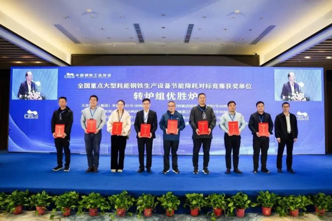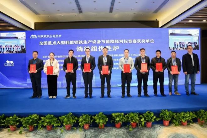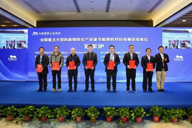 會議還對2021年度全國重點大型耗能鋼鐵生產設備節能降耗對標競賽獲獎單位進行了表彰——馬鞍山鋼鐵股份有限公司煉鐵總廠北區A號380㎡燒結機等7臺爐座獲評冠軍爐,北京首鋼股份有限公司8號360㎡燒結機等8臺爐座獲評優勝爐,漣源鋼鐵集團有限公司8號2800m3高爐等12臺爐座獲評高爐組優勝爐,太原鋼鐵(集團)有限公司2號180噸轉爐等8臺爐座獲評轉爐組優勝爐,攀鋼集團西昌鋼釩有限公司一燒360㎡燒結機等38座設備獲評創先爐。
