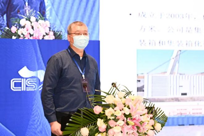 天津華派集裝箱制造有限公司總經理王燁作題為《皮帶運輸機靜電抑塵技術介紹》的報告