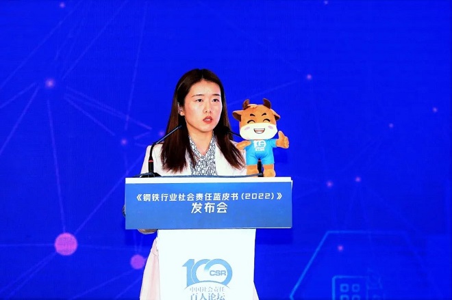 楊雯欽代鐘宏武對《藍皮書》進行了解讀。據了解,《藍皮書》編制工作于今年7月6日正式啟動,經歷了課題啟動、問卷調查、案例征集、案例評審、完善成書5個階段。《藍皮書》分為總論篇和案例篇兩大部分。其中,總論篇對鋼鐵行業社會責任形式要求、實踐進展以及鋼鐵行業社會責任管理與探索進行了系統的梳理和分析,明晰了鋼鐵企業未來履責的方向與重點;案例篇收錄了20家鋼鐵企業的優秀履責案例,為鋼鐵行業及企業探索深化履行社會責任提供了寶貴的經驗。