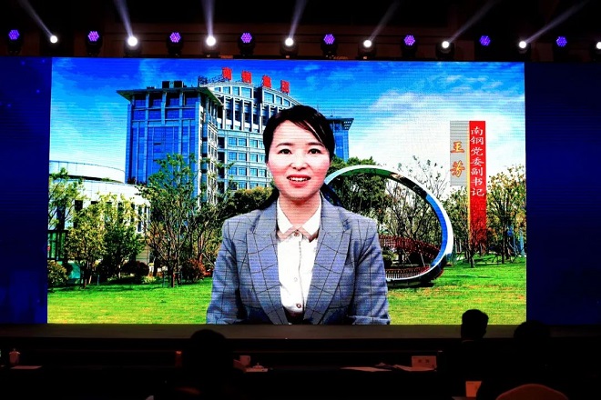 圖為王丹云做《在人類可持續發展進程中,重塑鋼鐵行業規則形象》的視頻發言