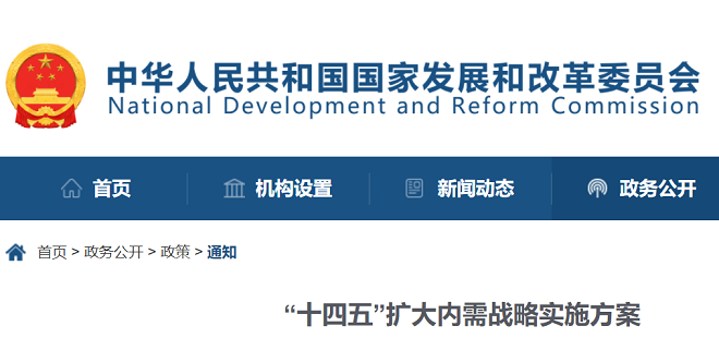 “十四五”擴(kuò)大內(nèi)需戰(zhàn)略實(shí)施方案