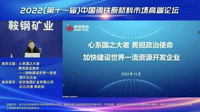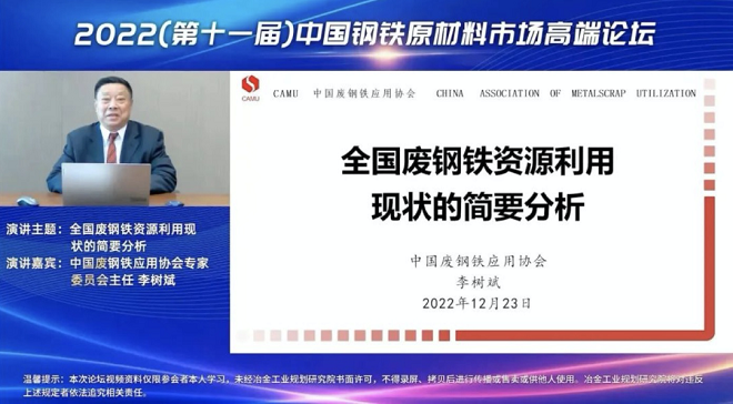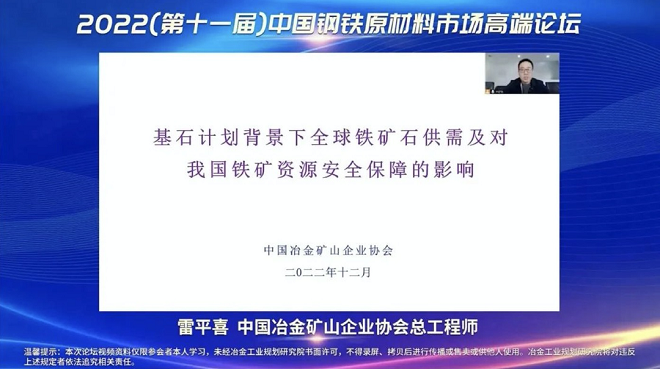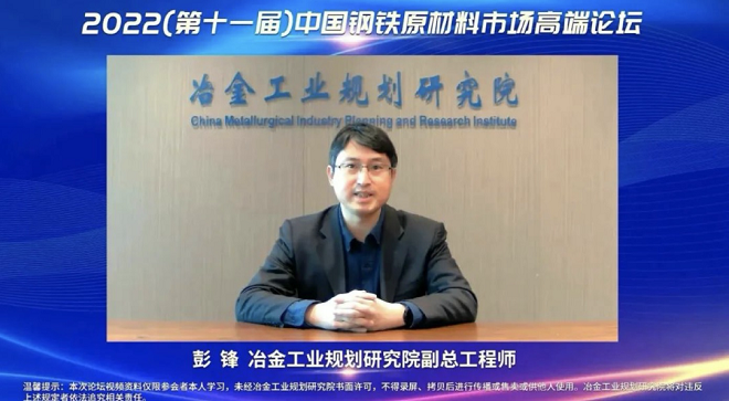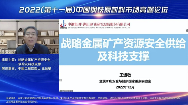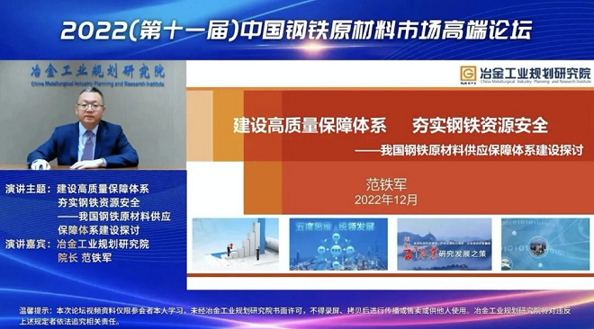 12月23日,冶金工業(yè)規(guī)劃研究院主辦的2022(第十一屆)中國(guó)鋼鐵原材料市場(chǎng)高端論壇以線(xiàn)上視頻形式成功舉辦。