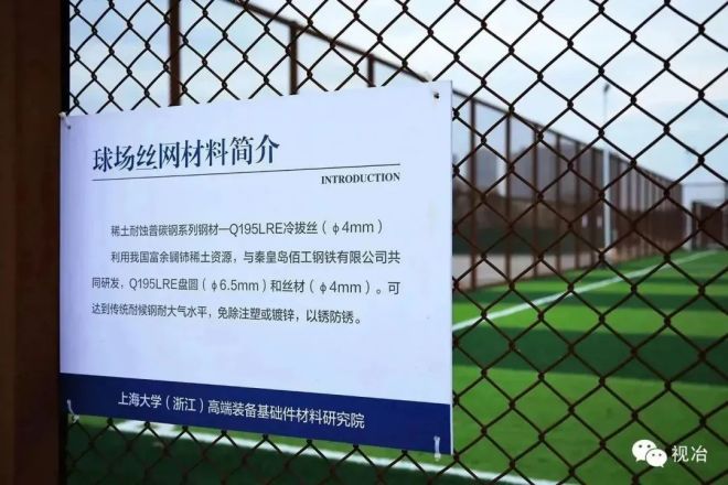 上善院園區里展示的佰工鋼鐵與上善院共同研發的球場絲網材料