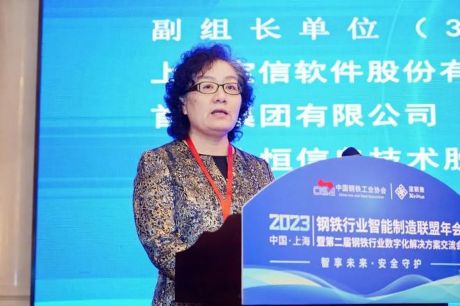 圖為北京京誠鼎宇管理系統(tǒng)有限公司總經(jīng)理葛秀欣做《冶金工廠數(shù)智轉(zhuǎn)型實踐》報告