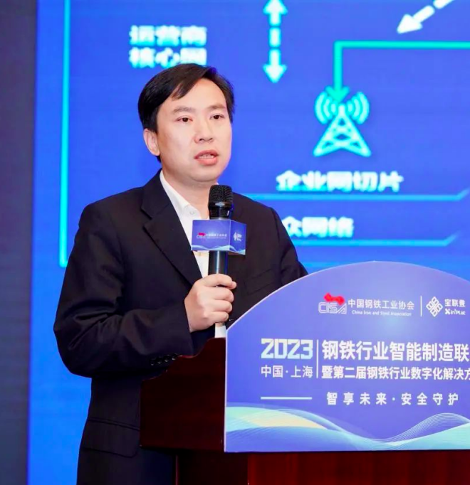 圖為中興通訊冶金鋼鐵業(yè)務(wù)部總監(jiān)周峰做《5G工控算力底座賦能鋼鐵行業(yè)OICT融合》報告