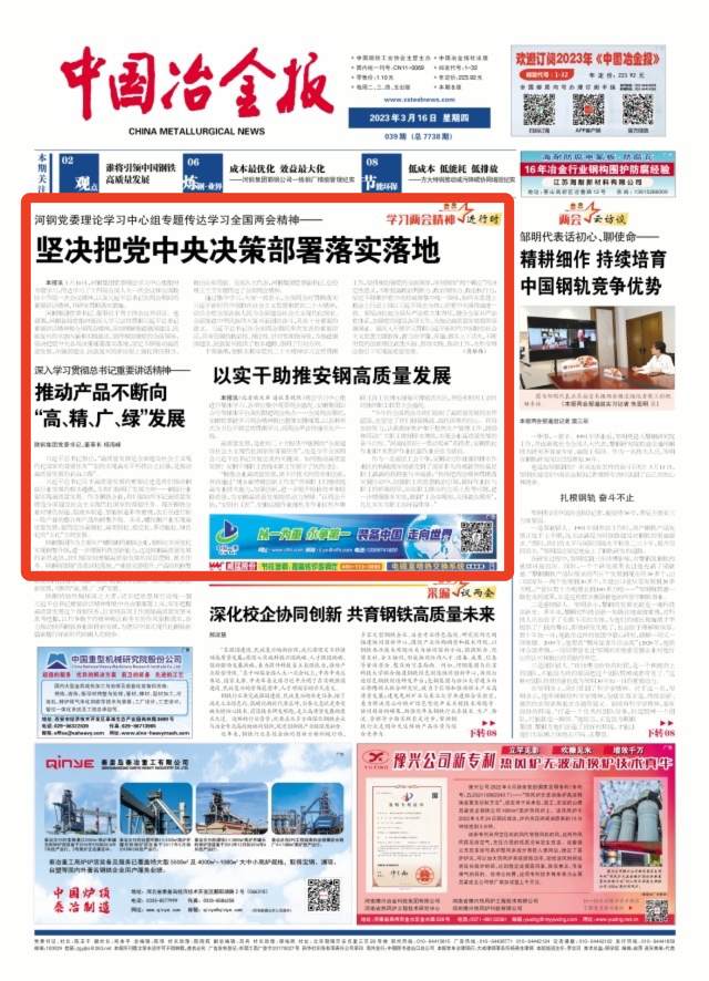 河鋼集團(tuán)黨委書記、董事長于勇主持會(huì)議并講話。他強(qiáng)調(diào),河鋼各級(jí)黨組織要深入學(xué)習(xí)宣傳貫徹習(xí)近平總書記重要講話精神和全國兩會(huì)精神,深刻理解推進(jìn)強(qiáng)國建設(shè)、民族復(fù)興的豐富內(nèi)涵和實(shí)踐要求,堅(jiān)持和加強(qiáng)黨的全面領(lǐng)導(dǎo),堅(jiān)決把黨中央各項(xiàng)決策部署落實(shí)落地,堅(jiān)定不移推動(dòng)高質(zhì)量發(fā)展,在強(qiáng)國建設(shè)、民族復(fù)興的新征程上強(qiáng)化責(zé)任擔(dān)當(dāng)、做出應(yīng)有貢獻(xiàn)。全國人大代表,河鋼集團(tuán)黨委副書記、總經(jīng)理王蘭玉專題傳達(dá)了全國兩會(huì)精神。