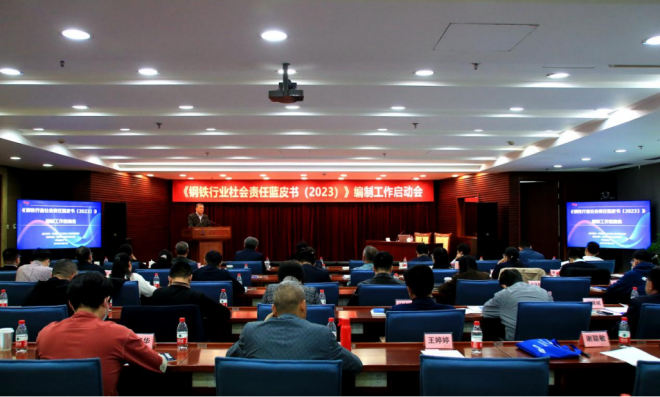 4月26日,《鋼鐵行業(yè)社會責(zé)任藍(lán)皮書(2023)》編制工作啟動會在中鋼國際廣場召開。會議總結(jié)了首部《鋼鐵行業(yè)社會責(zé)任藍(lán)皮書(2022)》發(fā)布的成效,對《鋼鐵行業(yè)社會責(zé)任藍(lán)皮書(2023)》編制工作提出了建議,介紹了項目進(jìn)展及下一步工作安排。