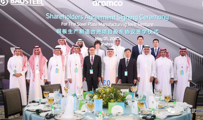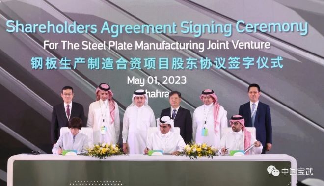 5月1日,寶鋼股份與沙特阿拉伯國家石油公司(以下簡稱沙特阿美)、沙特公共投資基金(以下簡稱PIF)正式簽約,共同在沙特阿拉伯建設全球首家綠色低碳全流程厚板工廠。