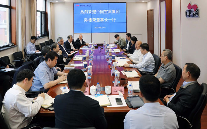5月9日,中國寶武鋼鐵集團有限公司黨委書記、董事長陳德榮到訪中國鋼鐵工業協會,與鋼協黨委書記、執行會長何文波就鋼鐵行業發展現狀以及面向未來發展的行業重大課題充分交換了意見。