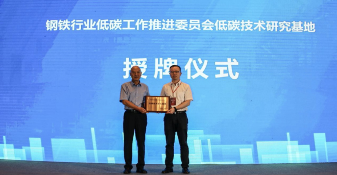 會議舉行了“低碳技術研究基地”授牌儀式,胡芝春代表低碳技術組長單位中冶賽迪集團有限公司上臺接牌。何文波授予中冶賽迪“低碳技術研究基地”,并希望中冶賽迪能夠繼續發揮自身技術優勢,作為技術組組長單位為鋼鐵行業綠色低碳高質量發展貢獻力量。