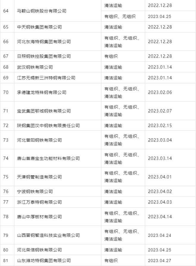 自2020年8月起,中國鋼鐵工業(yè)協(xié)會開展了鋼鐵企業(yè)超低排放改造和評估監(jiān)測進展情況公示工作。從中國鋼鐵工業(yè)協(xié)會網(wǎng)站獲悉,截至2023年7月11日,已有91家企業(yè)在鋼協(xié)網(wǎng)站進行公示。