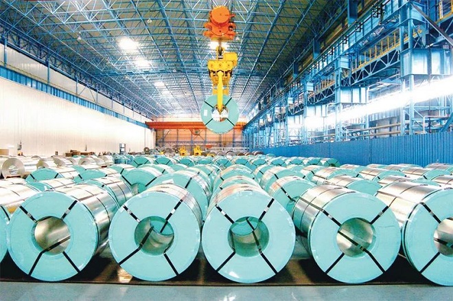 鋼鐵是制造強國建設(shè)的重要基石。鞍鋼集團聚焦鋼鐵主業(yè),生產(chǎn)多種優(yōu)質(zhì)鋼材,努力筑牢實體經(jīng)濟根基。圖為鞍鋼集團生產(chǎn)的優(yōu)質(zhì)鍍鋅板整裝待發(fā)。 鞍鋼集團供圖