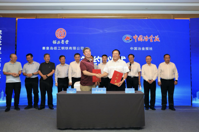 會議還進行了4項簽約儀式。佰工鋼鐵與冶金經研中心簽訂《典型產品生命周期評價(LCA)與環境產品聲明(EPD)開發咨詢》《2023秦皇島佰工鋼鐵環境、社會及治理 (ESG)報告》,與上海大學上善院簽訂《高端鑄鋼件開發合同》,與鋼鐵研究總院冶金工藝所簽訂《高寒環境用鋼制備新技術開發合同》,與中國冶金報社簽訂宣傳片《探知未來鋼鐵的邊界》制作合同。