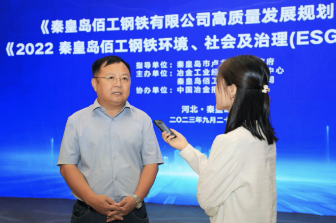 佰工鋼鐵總經理迪林發布《2022秦皇島佰工鋼鐵有限公司環境、社會及治理(ESG)報告》(另見報道)。