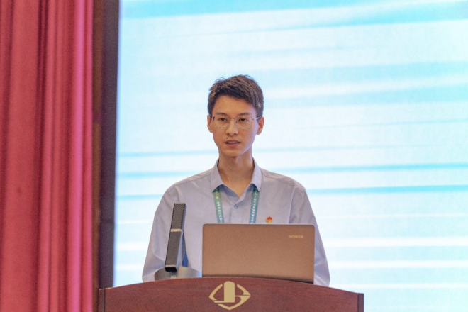 圖為周宇作題為《激發活力鑄品牌 引領青年同追夢》的主旨報告