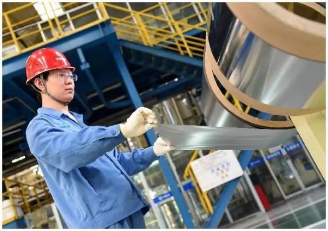 高等級取向硅鋼是電力傳輸中必備的尖端功能材料,因為生產難度大被稱為“鋼鐵皇冠上的明珠”。它被放在變壓器的“心臟”里,用來提升能效、降低電力輸配過程中的損耗。在2008年以前,變壓器用硅鋼主要被海外供應商壟斷,不僅鋼鐵工業的綜合技術水平沒法提升,下游電力行業的發展也被“卡脖子”。歷經千辛萬苦,寶武取得了高等級取向硅鋼自主研發的成功,實現在這一領域從無到有的跨越,從“受制于人”到“實現超越”。近年來,寶武硅鋼的產量穩居世界第一,出口38個國家和地區,海外用戶達200余家。據測算,如果中國在網運行變壓器均采用寶武新型取向硅鋼產品制造的話,每年可節約電耗約870億千瓦時,超過白鶴灘水電站一年的發電量,相當于每年減少二氧化碳排放約8670萬噸。