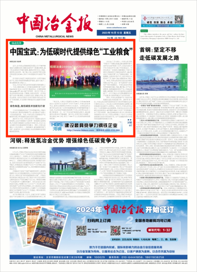 這僅僅是寶武綠色低碳發展的縮影之一。當前,隨著2500立方米富氫碳循環氧氣高爐(HyCROF)商業示范項目建成投運、寶鋼低碳鋼(BeyondECO?-30%)量產供貨第一卷正式下線以及高等級取向硅鋼、手撕鋼、高鐵車輪等一系列高端產品的不斷涌現,以高端化邁進、智能化升級、綠色化轉型、高效化發展為方向引領的寶武“四化”發展戰略,正在源源不斷地迸發出蓬勃發展新動能。