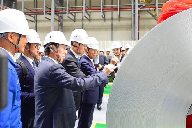 在熱烈的掌聲中,王正譜、鄭在浩、武衛東、金暉、何文波、于勇、崔正友、金學童、韓成熙、河鋼浦項汽車板總經理黃圭三共同啟動竣工按鈕,標志著近年來中國鋼鐵行業單體投資最大的外商合資項目正式投產運營。據了解,該項目于2021年6月25日成功簽約、2022年1月7日開工建設,項目總投資41.25億元,河鋼和浦項控股各占50%的股份,在河北唐山樂亭經濟開發區新建兩條世界領先的連續熱鍍鋅生產線,并將廣東既有的一條汽車板生產線股權納入旗下,年設計產能達到135萬噸,致力于為新能源汽車和高端品牌汽車提供低碳、綠色、輕量化的材料解決方案。項目新建生產線采用全球領先的智能控制技術,公司產品以高檔汽車板為主,兼顧高等級高強鋼和家電板,目標客戶為國際一線汽車廠和國內主流汽車廠。項目全面達產后,將成為國內單體規模最大的高端汽車板生產企業。