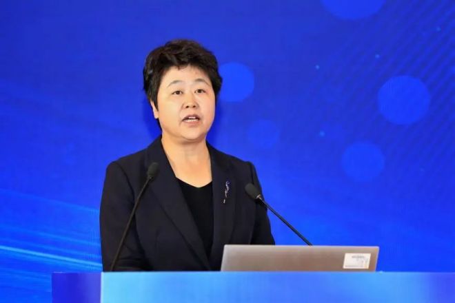 ▲河北省工信廳黨組副書記、副廳長郝莉笑做報告。