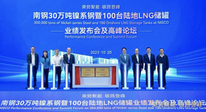 會議舉行了南鋼30萬噸Ni系鋼、100臺LNG陸地儲罐業績發布儀式。近年來,南鋼9Ni鋼產品以及低溫螺紋鋼及套筒,已用于建造了29座LNG接收站,包括14座國家重大工程、15個省市級重大工程和多個海外項目,總數超過100臺陸地LNG儲罐,南鋼Ni系鋼已經供貨超過30萬噸,所供鎳系鋼板首尾相連總長度達到1300余千米,與京滬高鐵總里程相近。這些項目的運營,可以大幅降低二氧化碳排放,助力全球溫室氣體減排。南鋼9Ni鋼獲得國家制造業單項冠軍產品、中國專利獎產品、國家工業強基項目產品、國家重點新產品等多項殊榮。南鋼是3.5Ni、5Ni、7Ni、9Ni等系列最全的生產企業,連續12年保持國內陸地、船上用鋼市場占有率第一;南鋼是率先實現Ni系鋼出口的鋼企;南鋼為全球最大VLEC船、全球最大容積陸地LNG儲罐等多個世界首臺套提供了Ni系鋼,實現了中國LNG產業從“跟跑”到“領跑”的轉變。南鋼還開發了世界首創的5Ni型鋼,填補了國際空白。除了傳統成熟產品之外,南鋼想用戶之所想,率先開發出第二代7Ni鋼、第三代高錳鋼等更具經濟優勢的產品,引領了低溫材料發展。