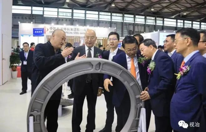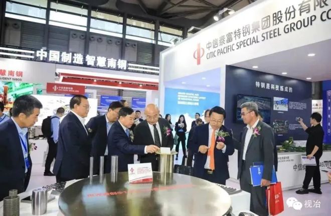 參加開幕式的領導和嘉賓參觀中信泰富特鋼展臺
