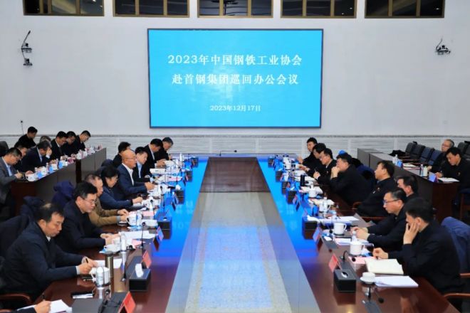 2023年12月17日,中國鋼鐵工業(yè)協(xié)會黨委書記、執(zhí)行會長何文波帶隊到首鋼集團巡回辦公,與首鋼集團黨委書記、董事長趙民革等圍繞產(chǎn)能治理方式、鋼材出口導向、中國綠色低碳標準和國際話語體系、綠色金融政策、共性技術研發(fā)組織方式等行業(yè)核心議題進行深入交流研討,達成多項共識。