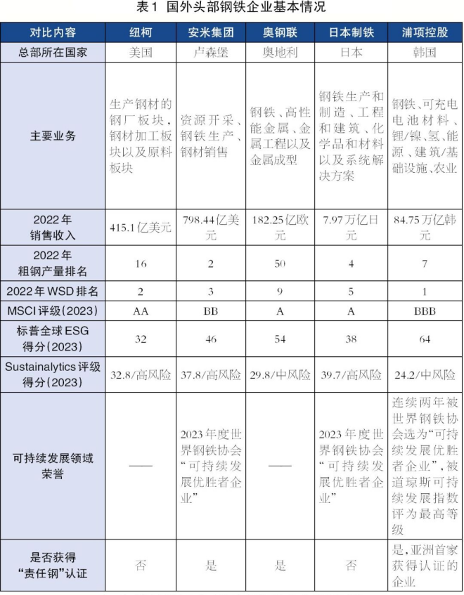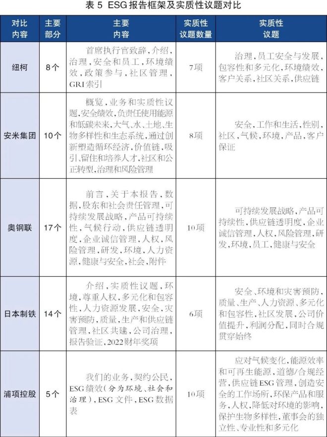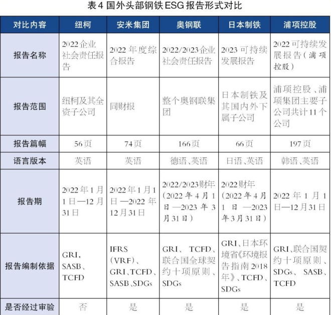 通過對比5家國外頭部鋼鐵企業(yè)的ESG報告(如表4所示),可以發(fā)現(xiàn):