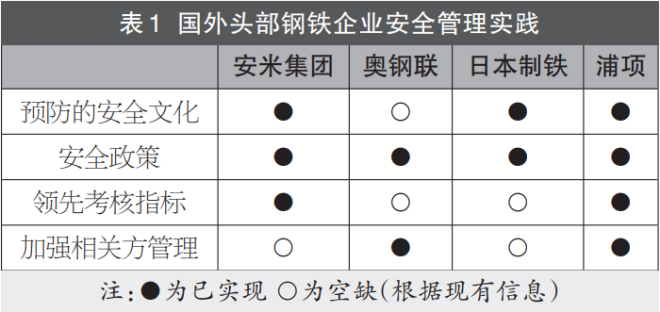 國外頭部鋼鐵企業高度重視安全管理,逐漸形成以預防為主的企業安全文化,并在此基礎上持續更新安全政策、調整組織架構和考核指標,創新安全管理舉措,加強相關方安全管理,不斷提升自身和相關方的安全管理水平。