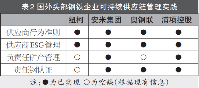 國外頭部鋼鐵企業制訂了供應商行為準則或負責任采購準則,根據準則對供應商進行評估和管理,同時采取多種舉措,應對供應鏈風險,增強整個供應鏈的可持續性。