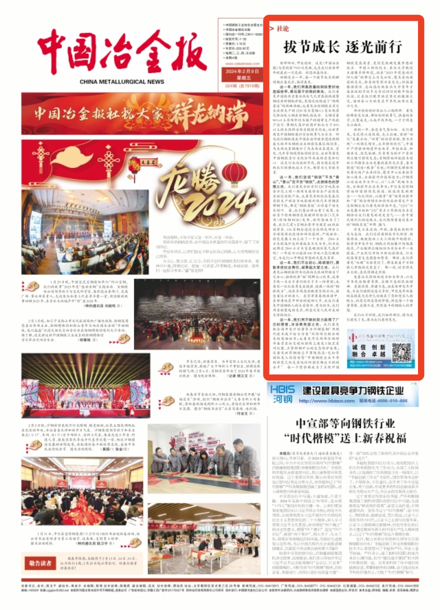 癸卯辭舊,甲辰迎新。這是《中國冶金報》與您的第7919次見面,也是我們在癸卯年的最后一次見面。祝您新春快樂。
