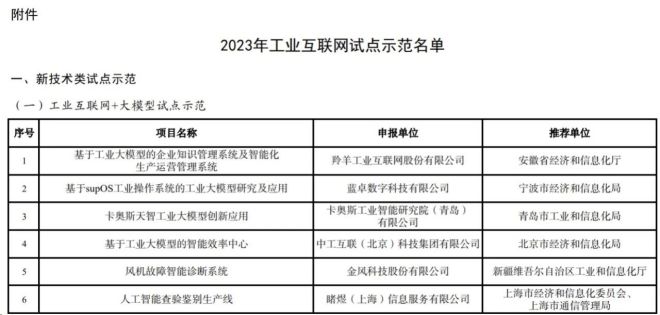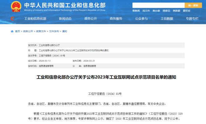關(guān)于公布2023年工業(yè)互聯(lián)網(wǎng)試點示范項目名單的通知