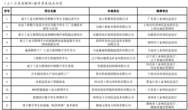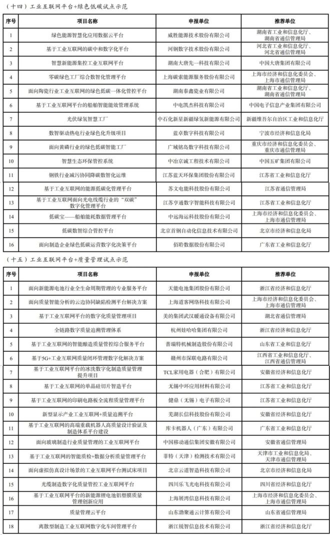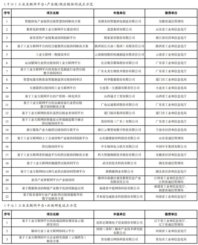 根據(jù)《工業(yè)和信息化部辦公廳關(guān)于組織開展2023年工業(yè)互聯(lián)網(wǎng)試點示范項目申報工作的通知》(工信廳信管函〔2023〕319號)要求,經(jīng)企業(yè)自主申報、地方推薦、專家評審和網(wǎng)上公示,確定了 2023 年工業(yè)互聯(lián)網(wǎng)試點示范項目名單,現(xiàn)予以公布。