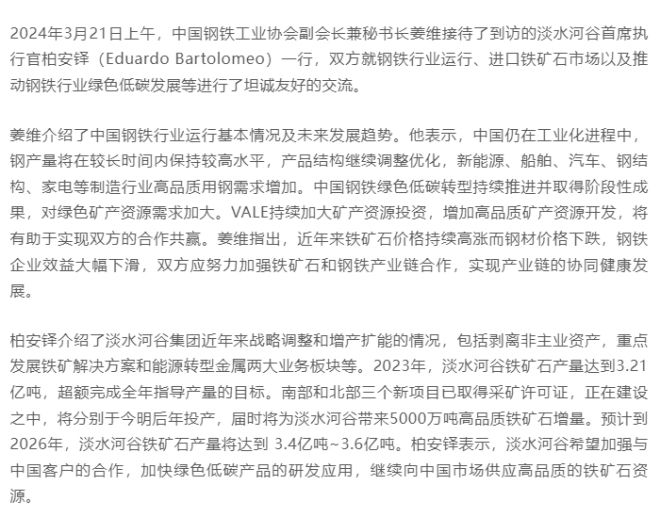 姜維與淡水河谷集團首席執行官柏安鐸舉行會談