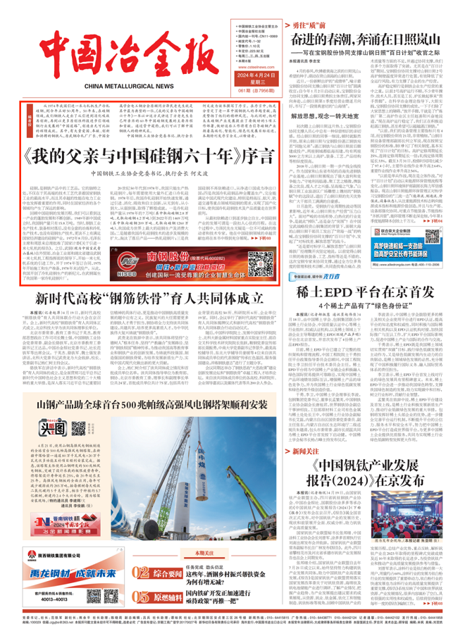我深信,《我的父親與中國硅鋼六十年》一書的出版將受到硅鋼產業的廣泛認可和歡迎,這本書將為我們全面總結中國冷軋硅鋼的發展史提供寶貴經驗,發揮一定的借鑒及幫助作用。同時,我也對未來中國硅鋼產業的發展充滿期待。我相信,將有越來越多的技術專家在冷軋硅鋼領域繼續努力探索,并以百折不撓、奮發有為的精神,引領著硅鋼產業朝著高端化、智能化、綠色化發展目標邁進。