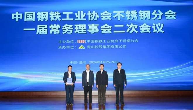 4月25日,中國鋼鐵工業協會不銹鋼分會一屆常務理事會二次會議在浙江溫州召開。青山控股集團有限公司董事長項秉雪任鋼協不銹鋼分會輪值會長。