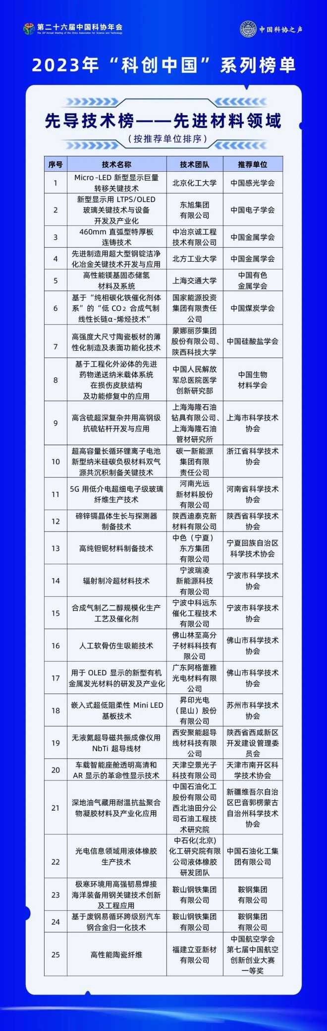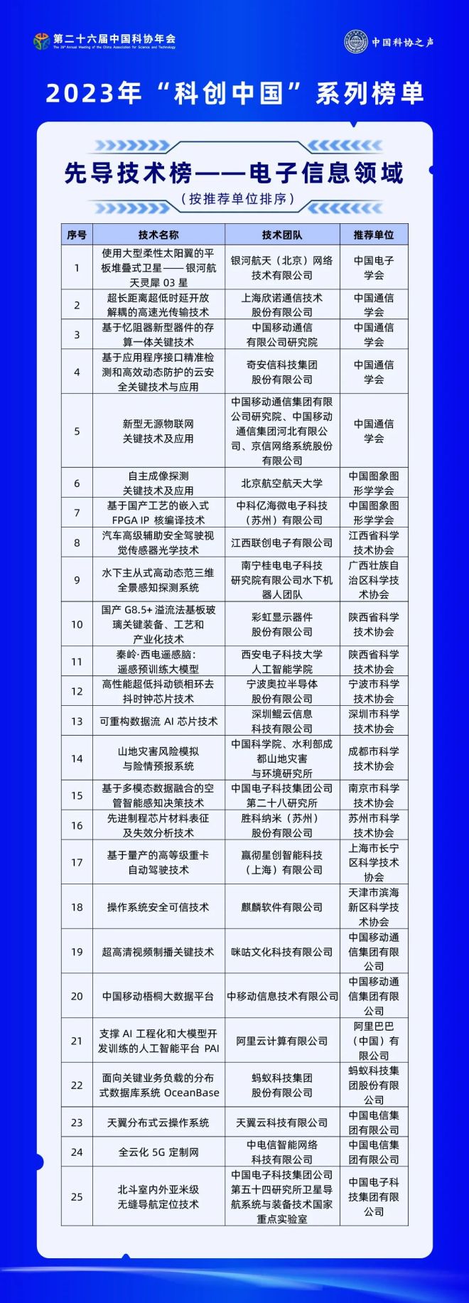 第二十六屆中國科協年會上,中國科協正式發布2023年“科創中國”系列榜單。