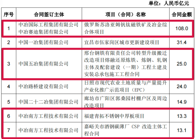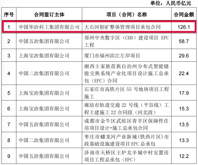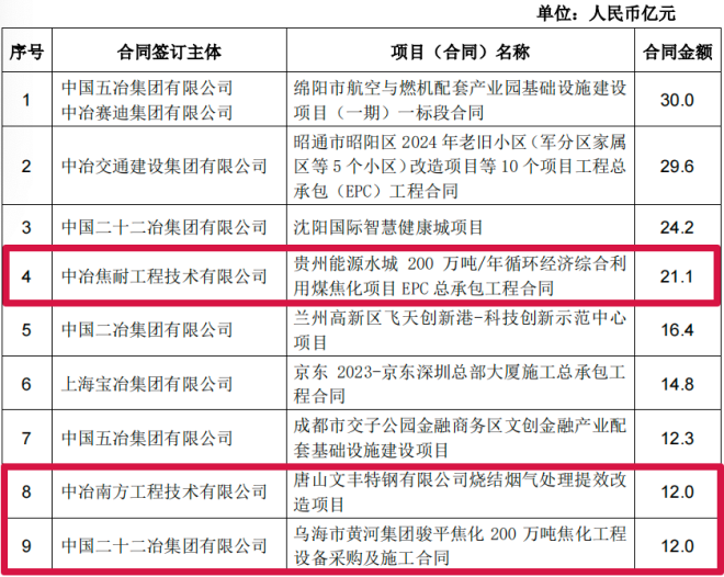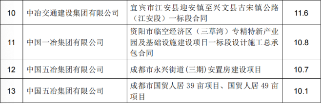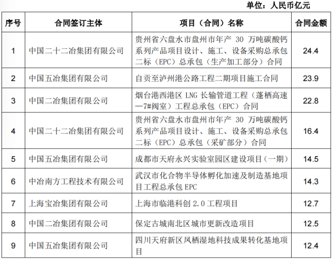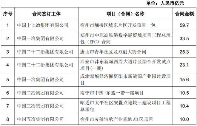 8月份,中國冶金科工股份有限公司部分新簽單筆合同額在人民幣10億元以上的重大工程承包合同如下——