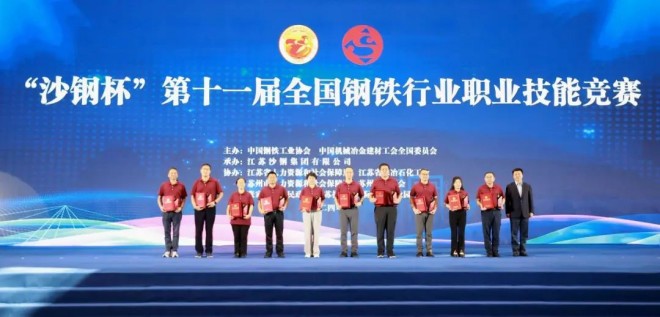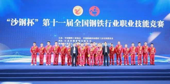 中國鋼鐵工業協會黨委副書記、副會長兼秘書長姜維出席閉幕式并講話。中國機械冶金建材工會全國委員會副主席、分黨組成員張杰,沙鋼集團常務執行董事、總裁龔盛出席閉幕式。沙鋼集團常務執行董事、副總裁,沙鋼鋼鐵有限公司董事長陳少慧出席閉幕式并講話。湖南鋼鐵集團黨委副書記曾順賢出席閉幕式并代表下屆賽事承辦單位表態發言。沙鋼集團常務執行董事、副總裁陳曉東;中國冶金報社黨委書記、社長范鐵軍;鋼協組織人事部(黨委辦公室)主任臧若愚;中國機械冶金建材工會全國委員會鋼鐵工作部部長、一級調研員王欣;江蘇省機冶石化工會主任張旭海;蘇州市總工會黨組成員、副主席吳洪斌;蘇州市人力資源和社會保障局副局長熊賢達;冶金人才資源開發中心黨委書記、主任譚曉春;冶金工業教育資源開發中心副主任(主持工作)王賀彬;鋼協組織人事部綜合處處長、總裁判長賈碩;江蘇省機冶石化工會二級調研員李春艷;張家港市人大常委會黨組成員,市總工會黨組書記、主席夏立新;沙鋼集團工會主席、沙鋼鋼鐵有限公司副總經理高夢婷;江蘇省機冶石化工會副主任田苓露;張家港市人力資源和社會保障局黨組成員、副局長盛宇紅;湖南鋼鐵集團湘潭鋼鐵公司培訓中心校長林志超;河鋼集團工會主任楊子軒等領導和嘉賓出席閉幕式。沙鋼集團黨委常委、總裁助理雷學民主持閉幕式。