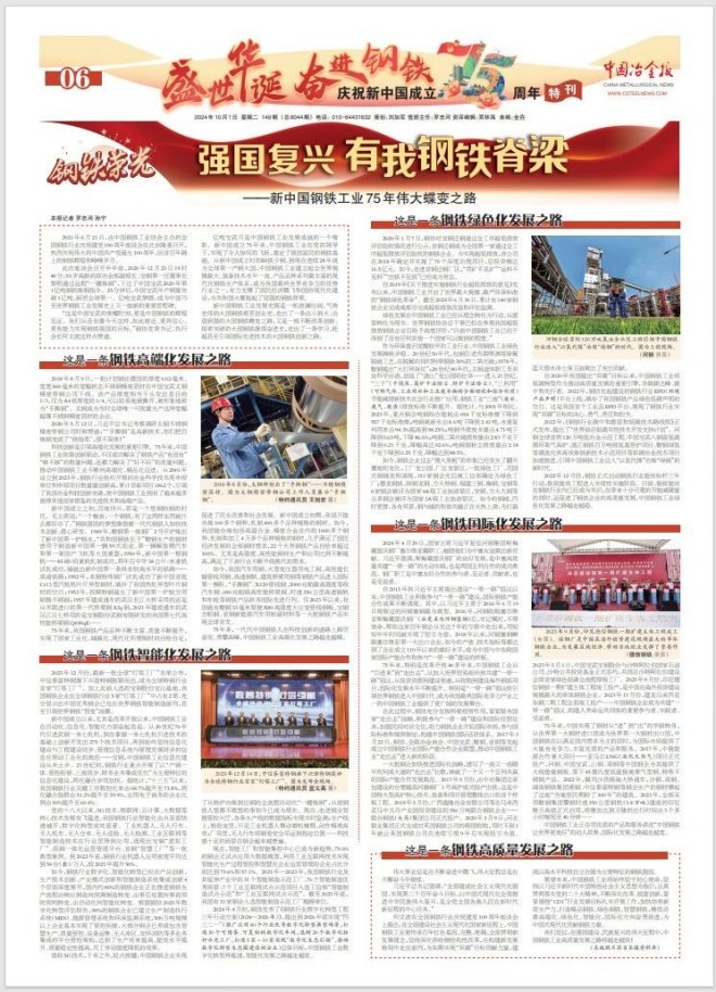 75年來,一代代中國鋼鐵人在科技創(chuàng)新的道路上踔厲奮發(fā)、勇攀高峰,中國鋼鐵工業(yè)高端化發(fā)展之路越走越精。
