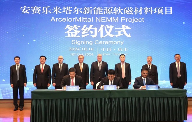 10月16日,全球鋼鐵巨頭安賽樂米塔爾(簡稱“安米”),攜手中國東方集團(香港)投巨資合作打造的新能源軟磁材料項目簽約活動在唐山舉行,這標志著高端、綠色、智能化、數字化的新能源軟磁材料項目,在河北唐山和江蘇常州正式落地、全面推進。據悉,這是近年來歐洲企業在華投資的最大項目之一,也是國內鋼鐵行業引進外商直接投資的最大項目之一。