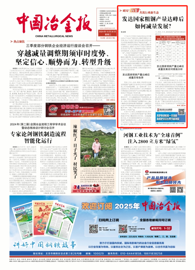當前,我國鋼鐵行業正處于粗鋼產量達峰的關鍵時期,發達國家在粗鋼產量達峰后也經歷了需求下降、產量降低和盈利能力減弱的過程。這些國家在粗鋼產量達峰后采取了哪些減量發展的調整應對措施,表現出哪些發展規律?對我國鋼鐵工業破解“內卷”難題、推動競爭轉型、實現高質量發展又有哪些借鑒和參考?
