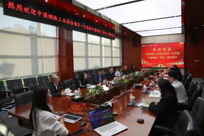 中建鋼構綜合辦公室/黨建工作部、商務管理部、科技與設計管理部、戰略與IT管理部相關負責人,以及鋼協規劃發展部、鋼鐵材料應用推廣中心,貿促會冶金行業分會,中國冶金報社,中建戰略研究院有關同志參加調研。