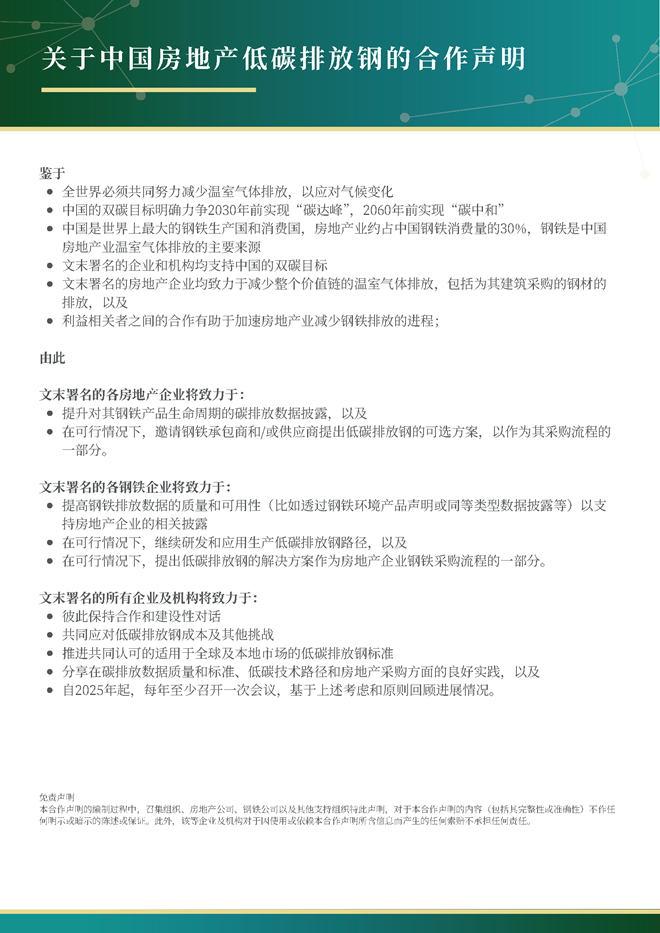 關于中國房地產低碳排放鋼的合作聲明:
