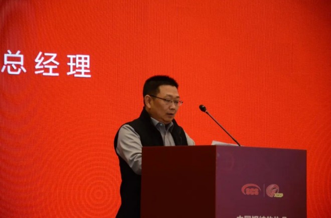 圖為江蘇省鋼鐵行業協會副會長兼秘書長陳洪冰致辭。