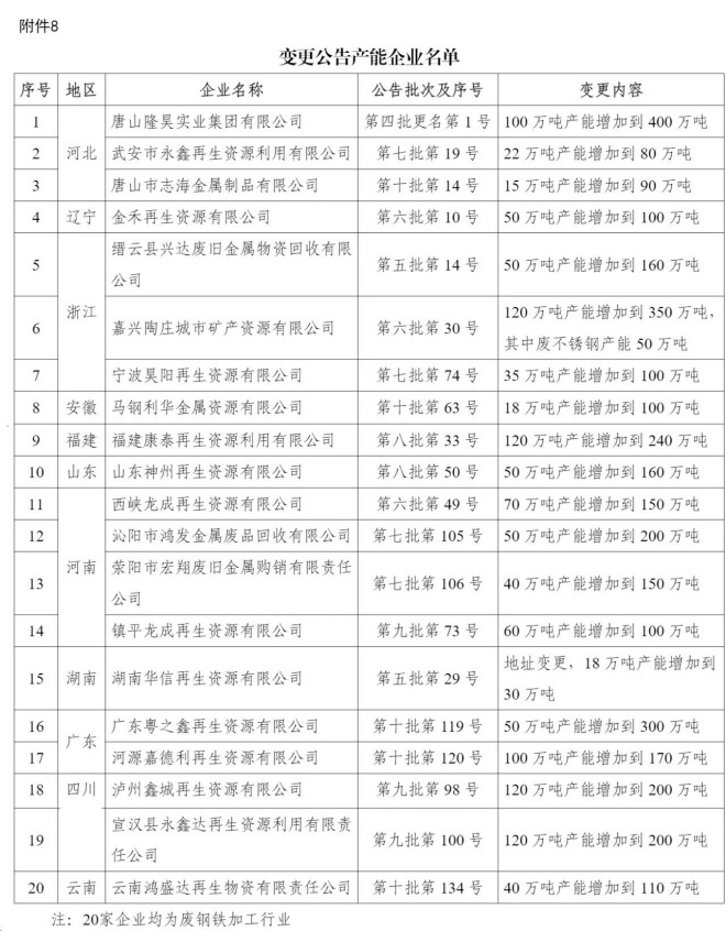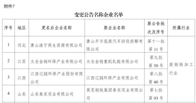 12月19日,工業和信息化部發布公告,根據《廢鋼鐵加工行業準入條件》等規范條件及相關公告管理辦法規定,經專家審核、現場核查及網上公示等程序,現將符合《廢鋼鐵加工行業準入條件》企業名單(第十二批)、符合《機電產品再制造行業規范條件》企業名單(第一批)等,以及變更、撤銷相關行業規范公告的企業名單予以公告。