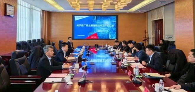 姜維指出,鋼協高度關注稀土耐蝕鋼產業發展,2023年開始針對核電行業用戶對螺紋鋼提出的耐蝕要求,組織鞍鋼、陜鋼、河南鋼鐵、中國鋼研、北科大、永鋼、上海大學、遼科大、廣西盛隆、江蘇鑫典、中廣核、蕪湖新興鑄管、鹽城聯鑫等產業鏈上下游單位共同組建了“耐蝕螺紋鋼共性技術創新平臺”,針對稀土耐蝕螺紋鋼開發開展共性技術攻關。通過兩年的協同創新,廣西盛隆等7家企業實現了稀土螺紋鋼的規模化生產和工程應用,檢驗檢測數據顯示,產品耐蝕性較普通螺紋鋼提高30%-50%,共性技術攻關取得了階段性成果。這為下一步稀土耐蝕鋼的大規模推廣應用奠定了堅實基礎,有利于促進耐蝕環境下鋼鐵產品應用水平提升,并擴大鑭、鈰等輕稀土應用。為此,鋼協將推進稀土耐蝕鋼產業化應用工作列入了2025年向政府提出的十大建議,推動進一步開展協同創新,打通稀土、鋼鐵及用鋼產業鏈。希望包鋼發揮稀土領域龍頭引領作用,牽頭組建“稀土耐蝕鋼推廣應用工作組”,組織行業加快拓展稀土耐蝕鋼在建筑、交通、電力等領域的應用,聯合上下游企業構建協同創新生態圈。