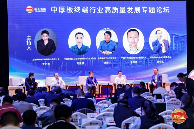 會議同期舉辦了中厚板終端行業(yè)高質(zhì)量發(fā)展論壇。中國可再生能源學(xué)會風(fēng)能委員會主任于貴勇、中國船舶工業(yè)行業(yè)協(xié)會副秘書長譚乃芬、中國機械聯(lián)統(tǒng)計與信息工作部副處長萬道濮、中國鋼結(jié)構(gòu)協(xié)會專家委員會常務(wù)副主任賀明玄等參加論壇。論壇嘉賓從機械工業(yè)、船舶、能源、鋼結(jié)構(gòu)等下游行業(yè)角度,圍繞行業(yè)發(fā)展態(tài)勢、鋼材細(xì)分領(lǐng)域調(diào)整方向、對高端鋼材的需求變化等話題進行交流。