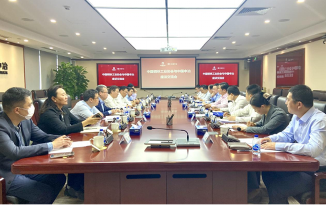 中國中冶企業(yè)管理部、科技管理部、黨群工作部、國內市場營銷部,中冶建研院,中冶京誠相關負責人,以及鋼協(xié)規(guī)劃發(fā)展部、鋼鐵材料應用推廣中心,冶金貿促會有關同志參加座談交流。