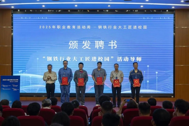 會上,李子高、榮彥明、唐笑宇、卜維平、郝軍強五位技能大師獲頒“鋼鐵行業(yè)大工匠進校園”活動導(dǎo)師聘書。隨后,五位導(dǎo)師分享了自身用工匠精神“澆灌”技能成才的心路歷程,并與在場的學(xué)生進行了互動交流。